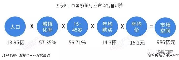 因而,奶茶具有庞大的潜在消费者,根据中国人口、城镇化率、奶茶价格等因素的综合估算,预计我国奶茶市场容量能够达到986亿元,接近千亿元。